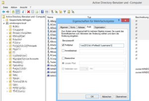 Ein kleiner Trost mag es hierbei sein, dass man bei einer Konfiguration pro Benutzer nicht jedes Konto einzeln bearbeiten muss. Vielmehr kann man in ADUC mehrere Einträge markieren und den Profilpfad für alle gemeinsam eingeben. Dabei empfiehlt es sich natürlich, für das Verzeichnis eine Umgebungsvariable zu verwenden, also nach dem Muster \\server\freigabe-fuer-profile\%username% (siehe dazu: Freigabe für Roaming Profiles und Ordnerumleitung einrichten: Name, Berechtigungen, Cache).