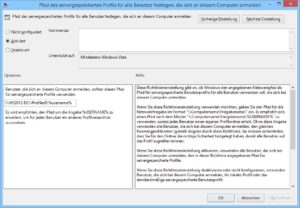 Mit der Aktivierung dieser Richtlinie und der Eingabe eines Pfads zum Profilverzeichnis ist das Feature startklar. Allerdings existieren noch einige weitere Einstellungen, mit dem man sein Verhalten beeinflussen kann.